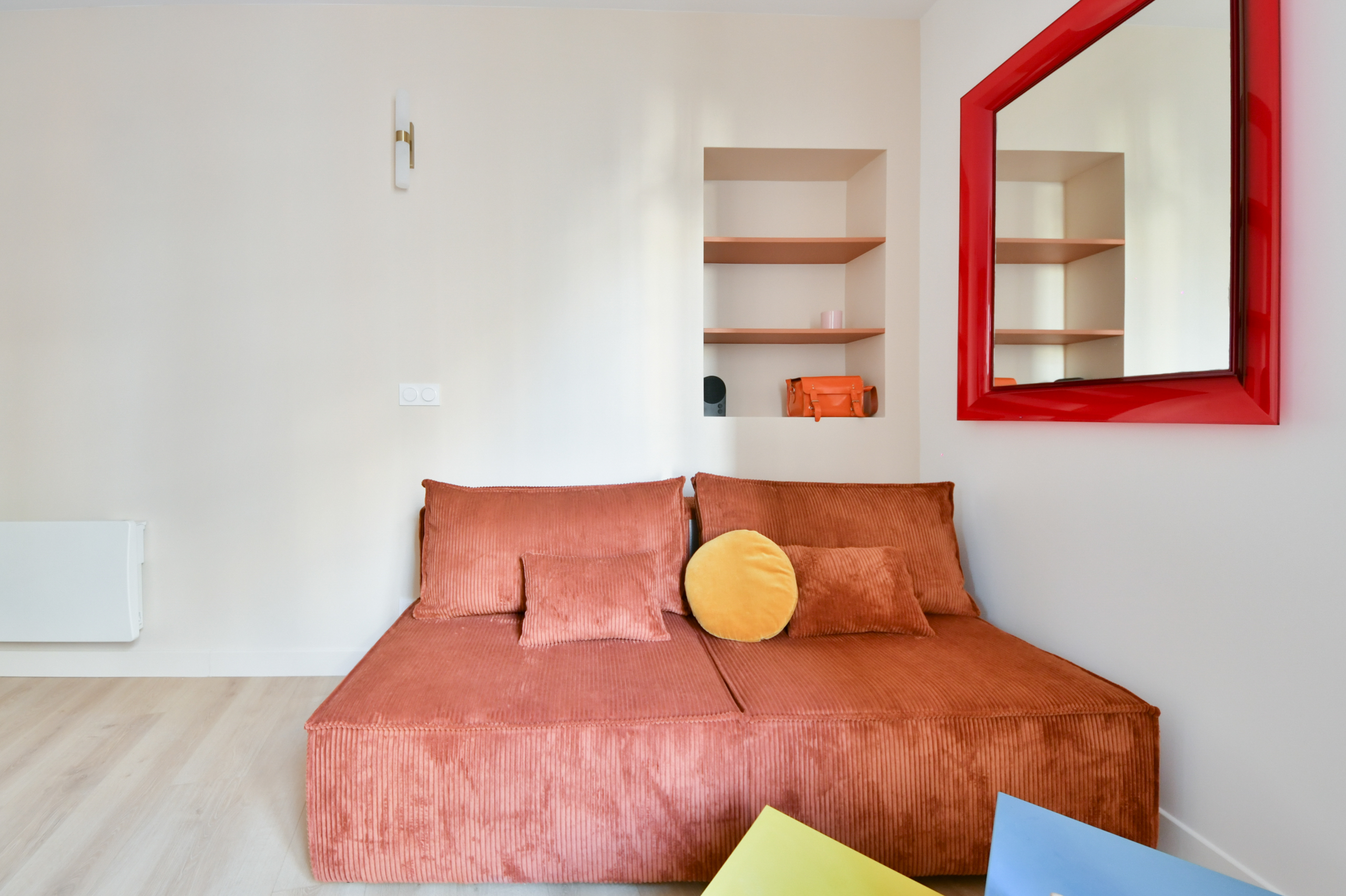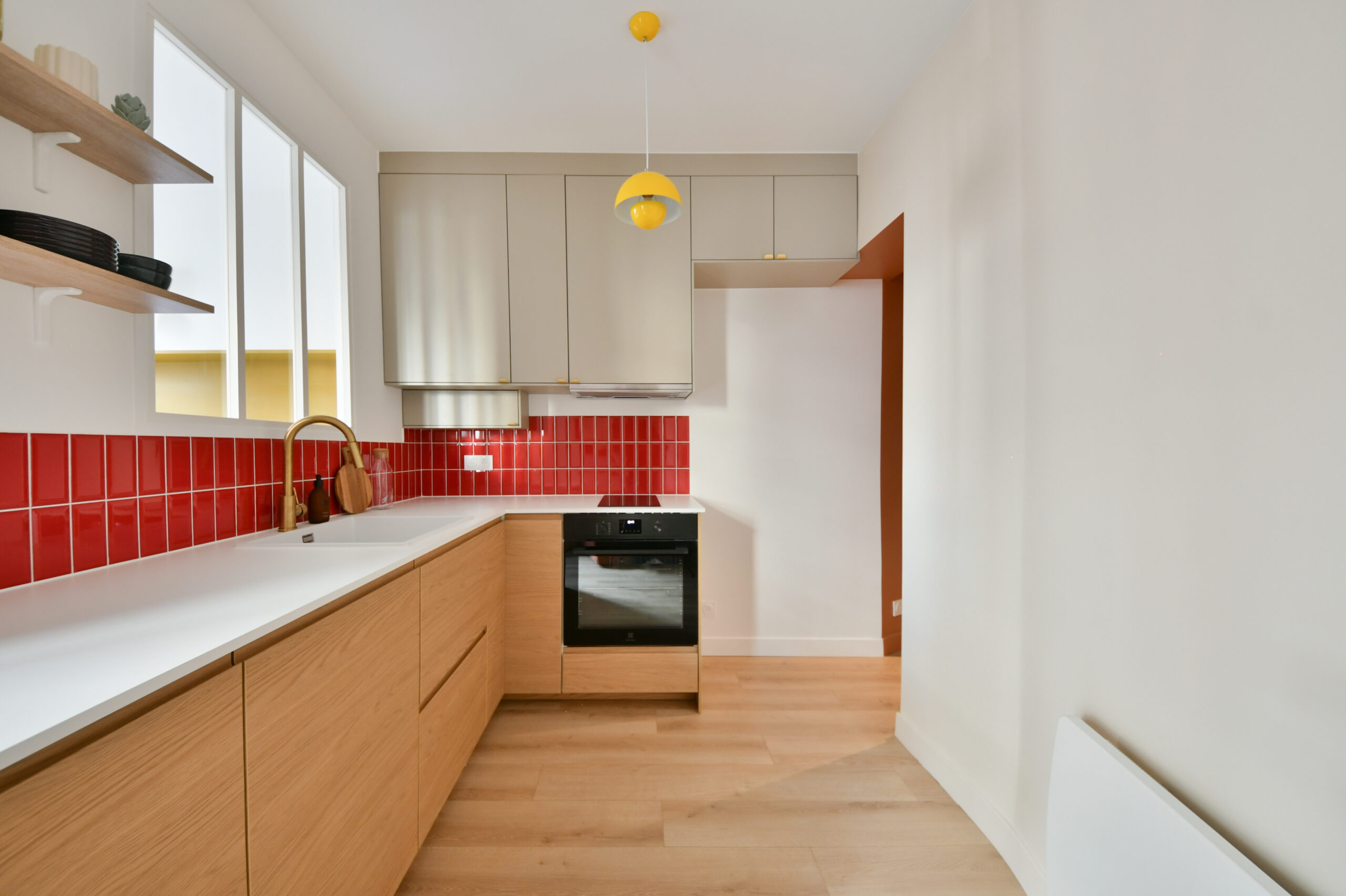 La dépose totale des cloisons et des équipements existants ont permis de concevoir un pied-à-terre chaleureux, fonctionnel et optimisé dans ses moindres usages.